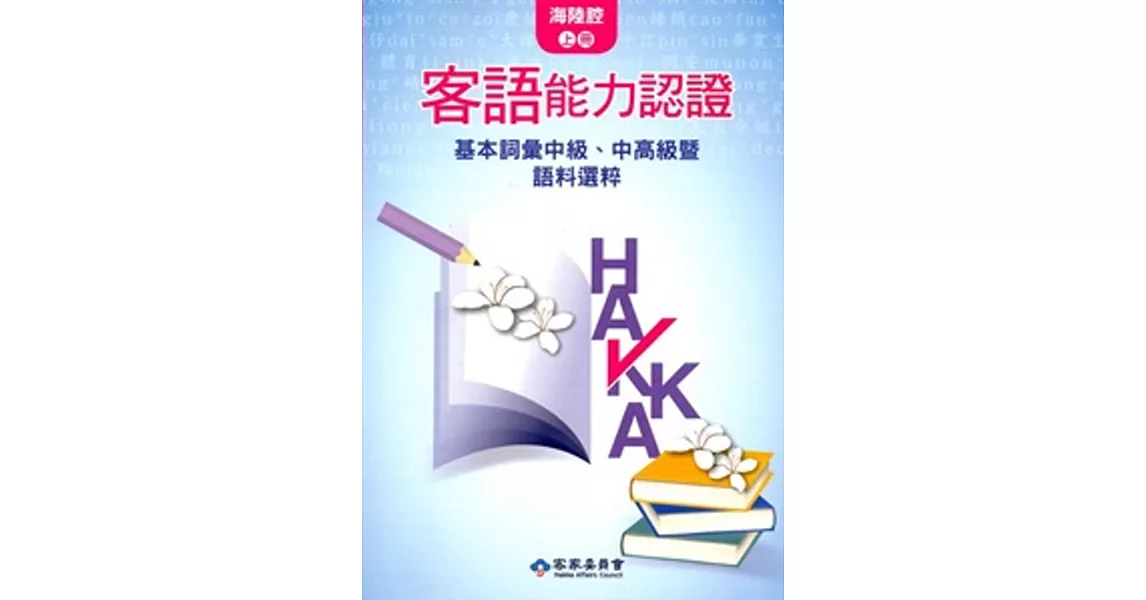 博客來-104年客語能力認證基本詞彙中級、中高級暨語料選粹(海陸腔 上、下冊)[附CD]2版訂購網址: https://www.books.com.tw/exep/assp.php/87926/products/0010688118?utm_source=87926&utm_medium=ap-books&utm_content=recommend&utm_campaign=ap-201906
