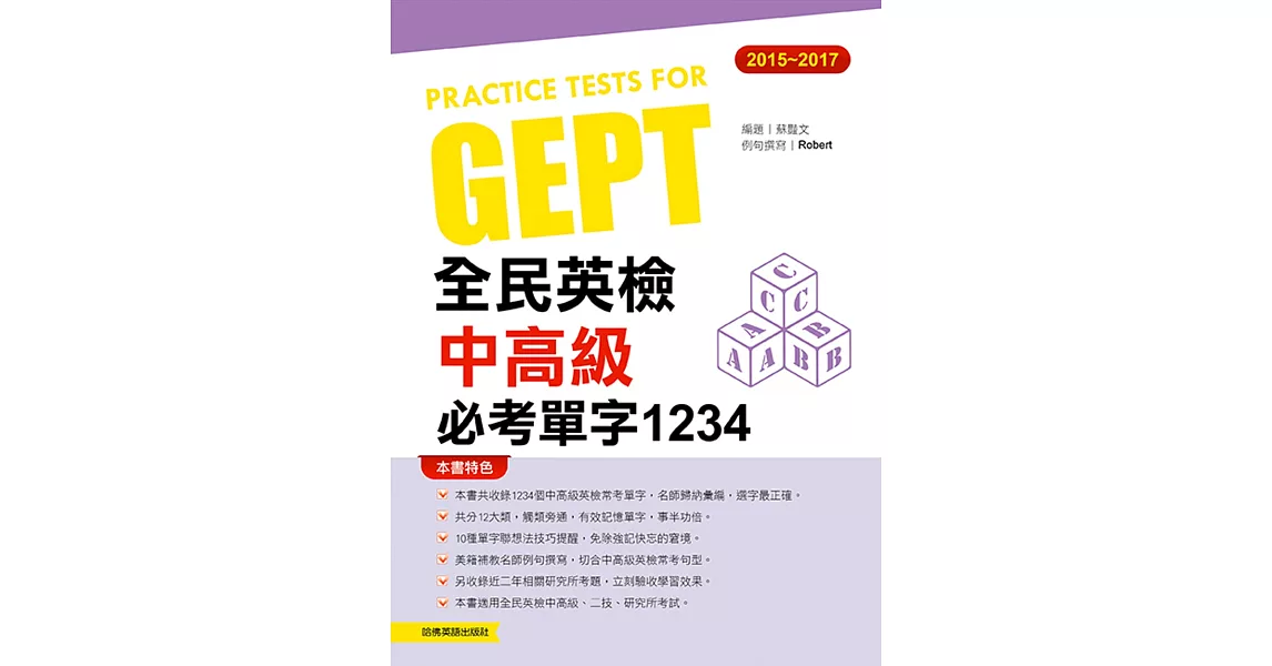 商品說明: 2015-2017全民英檢中高級必考單字1234