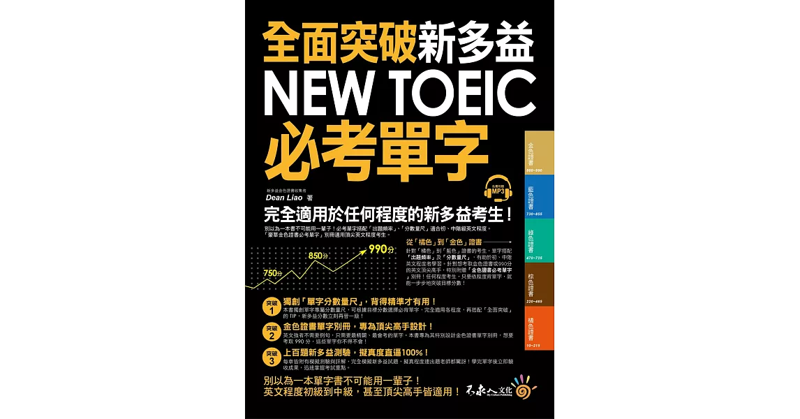 英文強者不需要例句,只需要最精闢、最會考的單字。本書專為其特別設計金色證書單字別冊,想要考取990分,這些單字你不得不會!