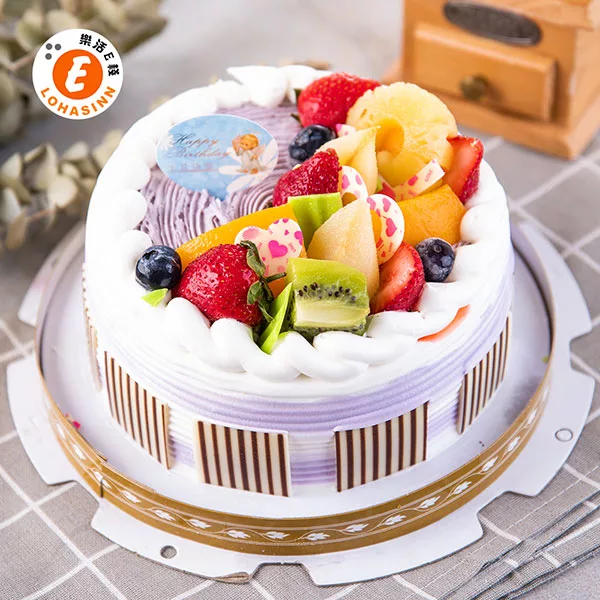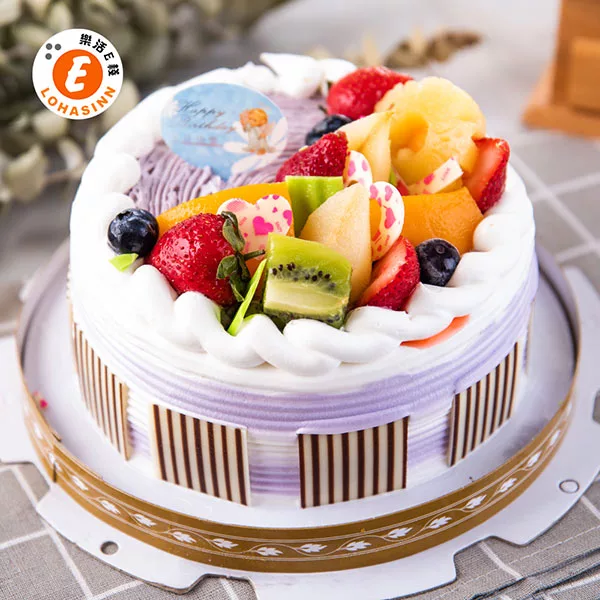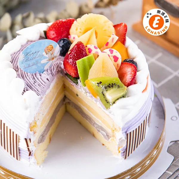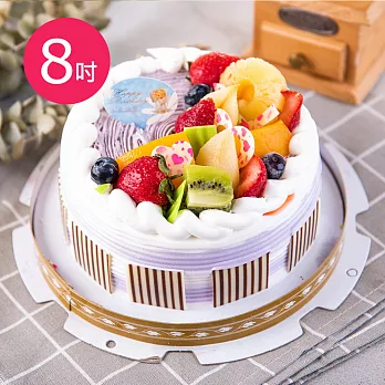 預購-樂活e棧-生日快樂造型蛋糕-紫香芋迴旋曲蛋糕(8吋-顆,共1顆)水果x布丁
