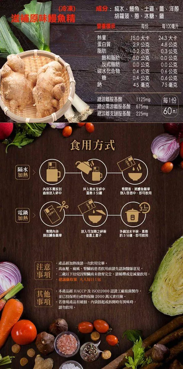 原味鰻魚精利用蔥薑提味
