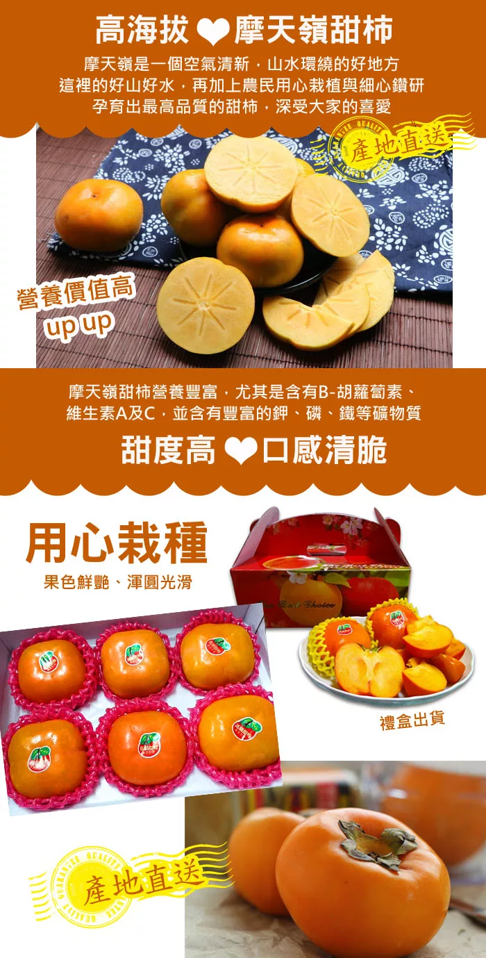 →→→→更多詳細”【產地直送】摩天嶺甜柿7A禮盒X4箱(6粒-箱-每顆230g±10%)”介紹請點我